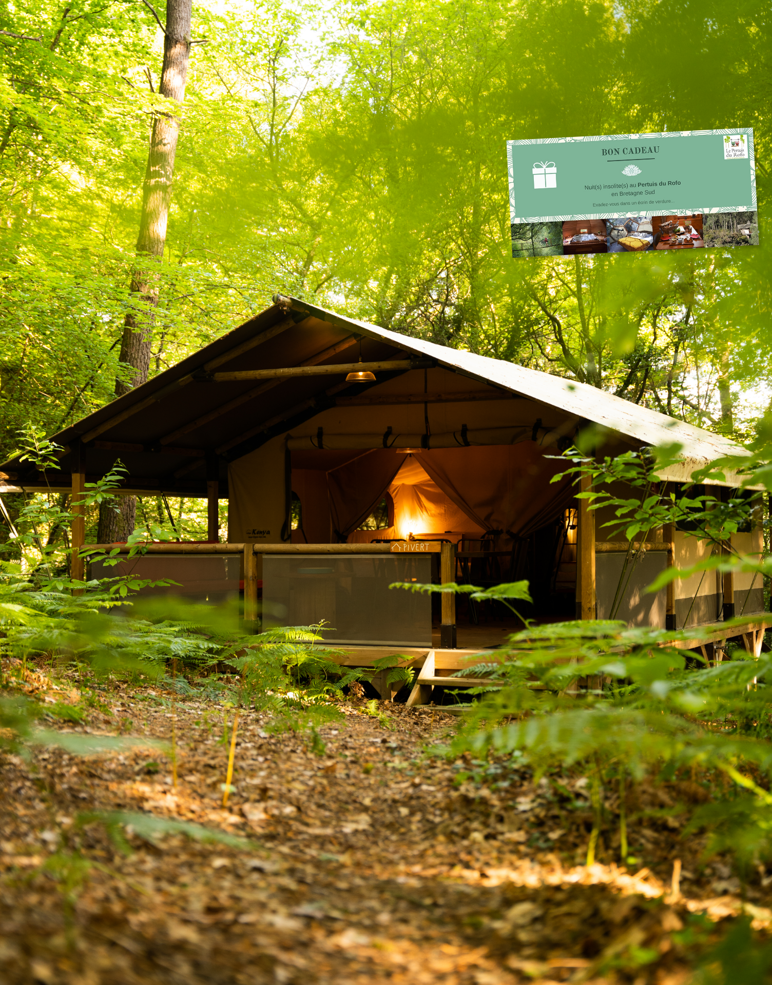 Nuit insolite dans l’une de nos tentes Lodge : Le Pivert, La Salamandre ou l’Engoulevent pour deux personnes avec petits déjeuners.